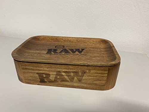 Raw Cache Box + RAW Small Wood Rolling Tray en gratis metalen asbak