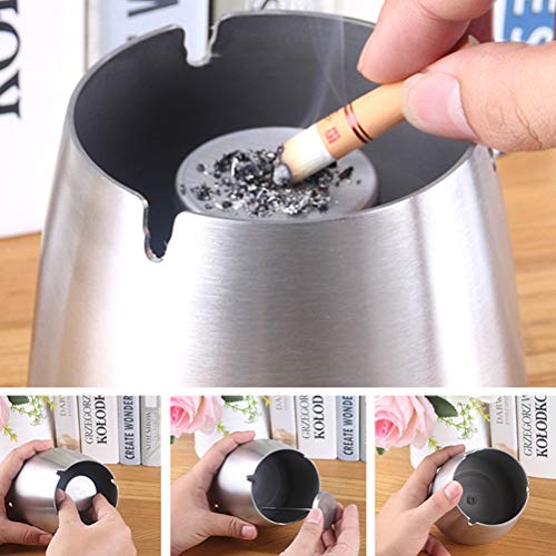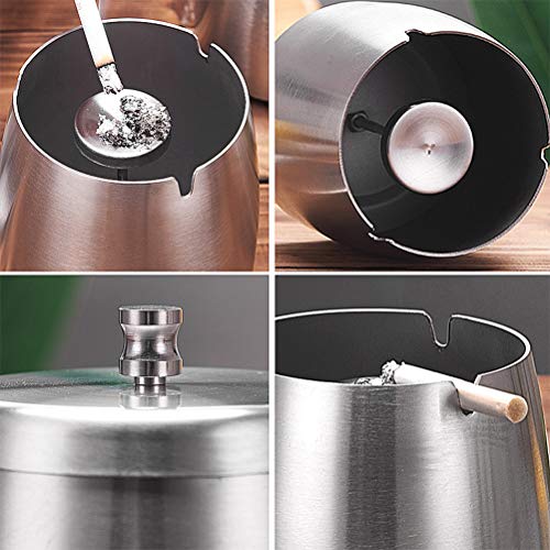 TIMESET L draagbare roestvrijstalen asbak met deksel, sigarettenasbakken voor buiten gebruik binnen, winddichte asbak…