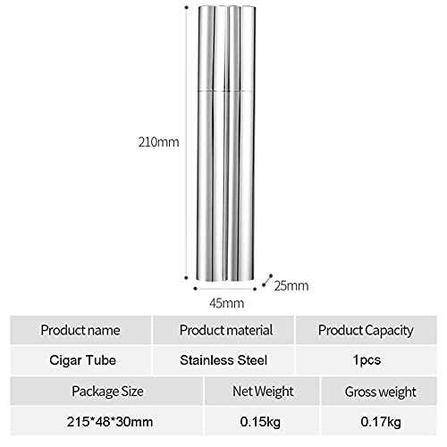 Roestvrij staal: deze sigarenbuis is gemaakt van hoogwaardig roestvrij staal, niet-toxisch, niet-geur, veilig om te gebruiken, onschadelijk voor het menselijk lichaam, en heeft de voordelen van anti-roest, anti-corrosie, sterk en duurzaam