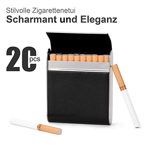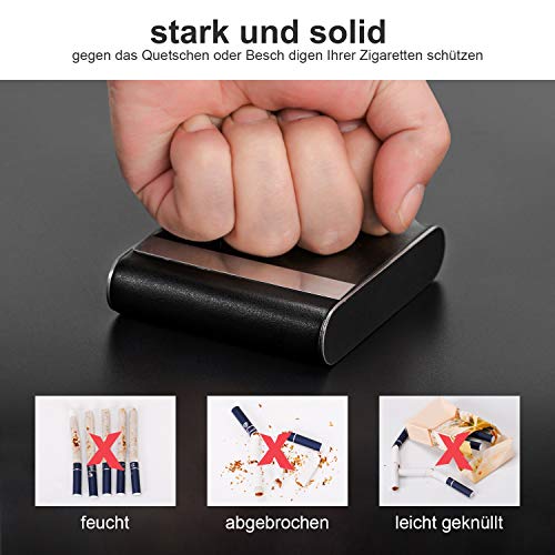 * Ergonomisch design: de sigarettenbox is gemaakt van roestvrij staal, PU en stof. Een harde buitenhoes voorkomt het knijpen of beschadigen van je sigaretten.