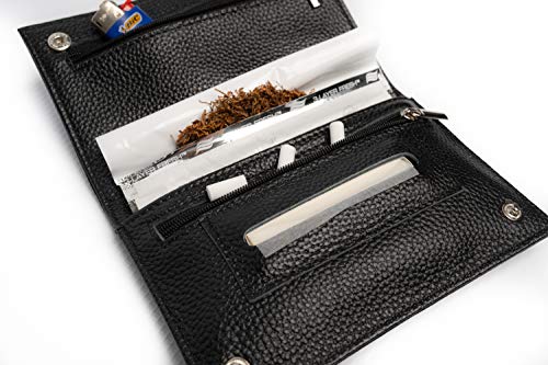 Specification: Lederen tabakstas tabakstas van zwart leer met reliëf London Haze logo, zwarte tabakstas. Cadeau-idee voor rokers. Black…