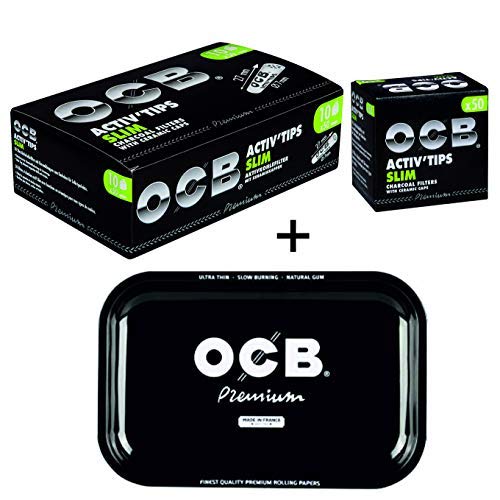 Specification: OCB ActivTips Slim 7 mm actieve koolstoffilter met keramische doppen – 10 x 50 stuks Plus Black Rolling Tray, zwart, M
