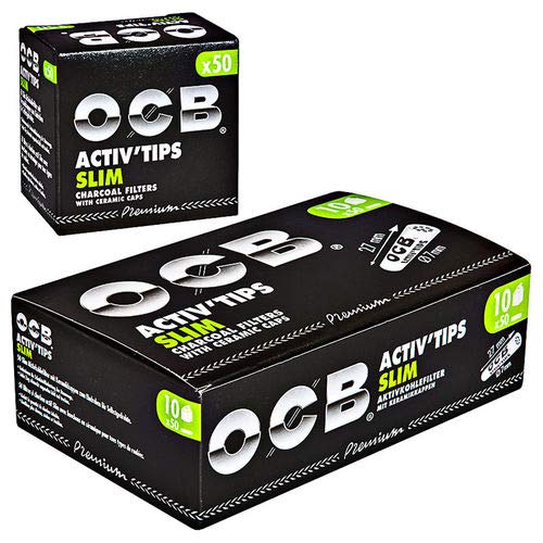 OCB ActivTips Slim 7 mm actieve koolstoffilter met keramische doppen – 10 x 50 stuks Plus Black Rolling Tray, zwart, M